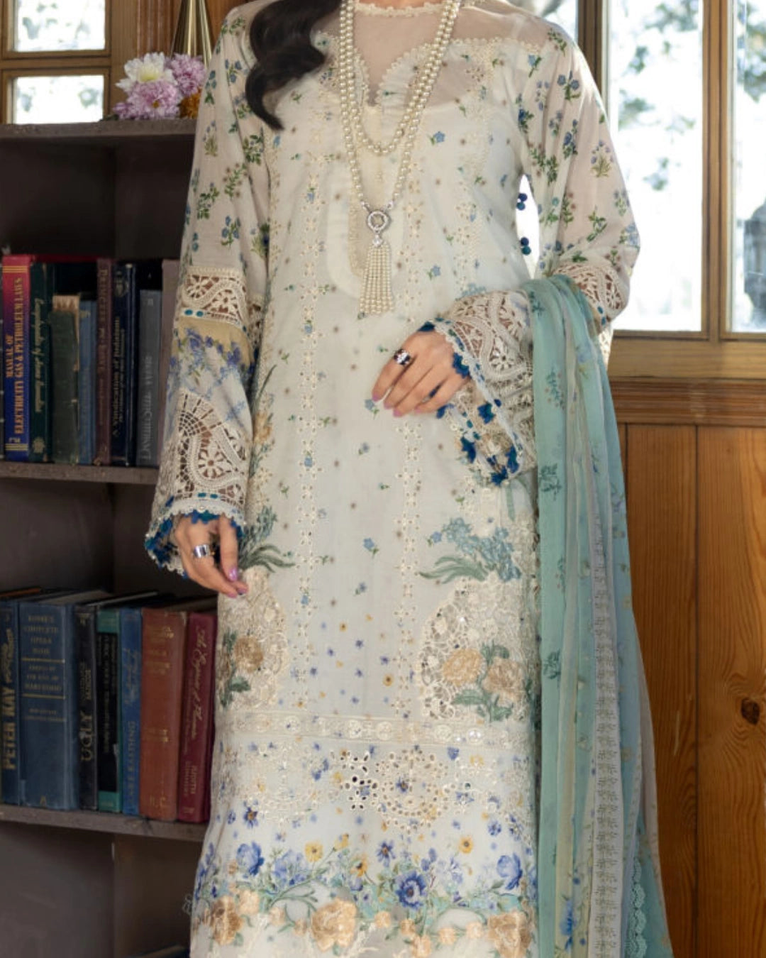 • Luxurious digital printed lawn shirt with embroidered organza borders