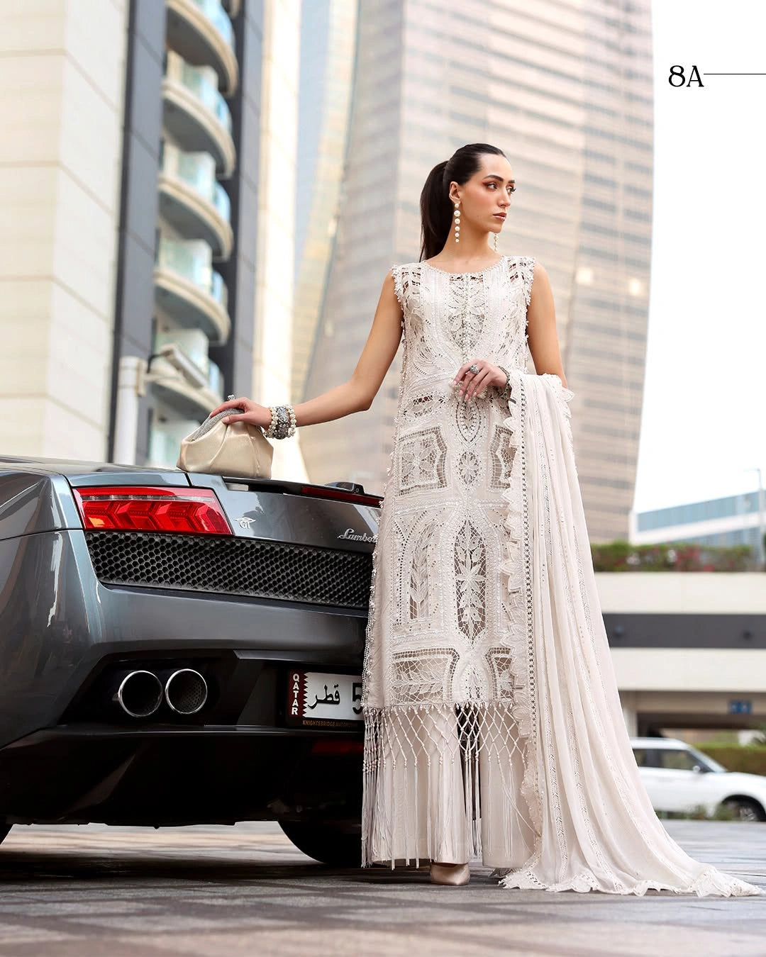 Enhance your wardrobe with this beautifully detailed 3 Piece Unstitched Embroidered Lawn Suit, designed for graceful and refined styling. The lawn shirt features prestiched embroidered front right and left panels, complemented with dyed side panels and back for a balanced and elegant look. A delicate pearl lace neckline adds a soft, luxurious touch, while the embroidered sleeves with matching borders elevate the overall design.