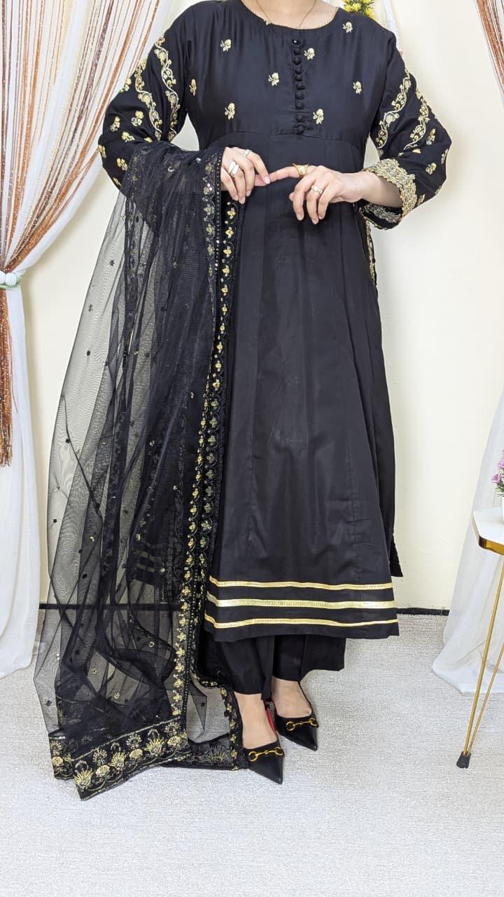 Amna Khurram Lawn Embroidered 3-Piece Suit with Embroidered Net Dupatta A026 – Ready to Wear