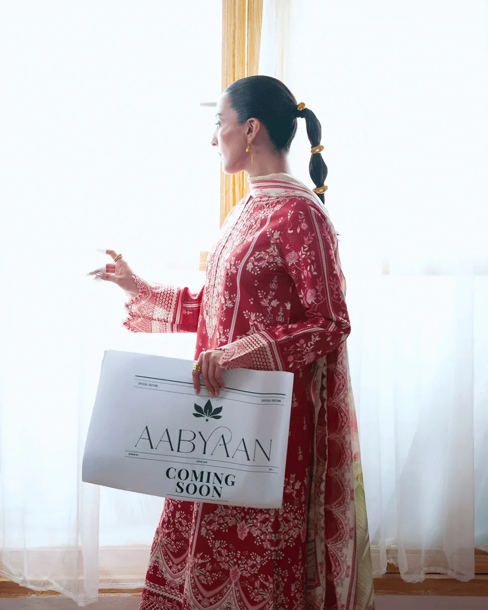 Soft hues and fresh prints come together in Falak, a thoughtfully designed 3-piece ensemble that reflects effortless elegance. Crafted on a lightweight dobby lawn base, the shirt features delicate embroidery that adds depth and refined texture, creating a graceful yet contemporary look.