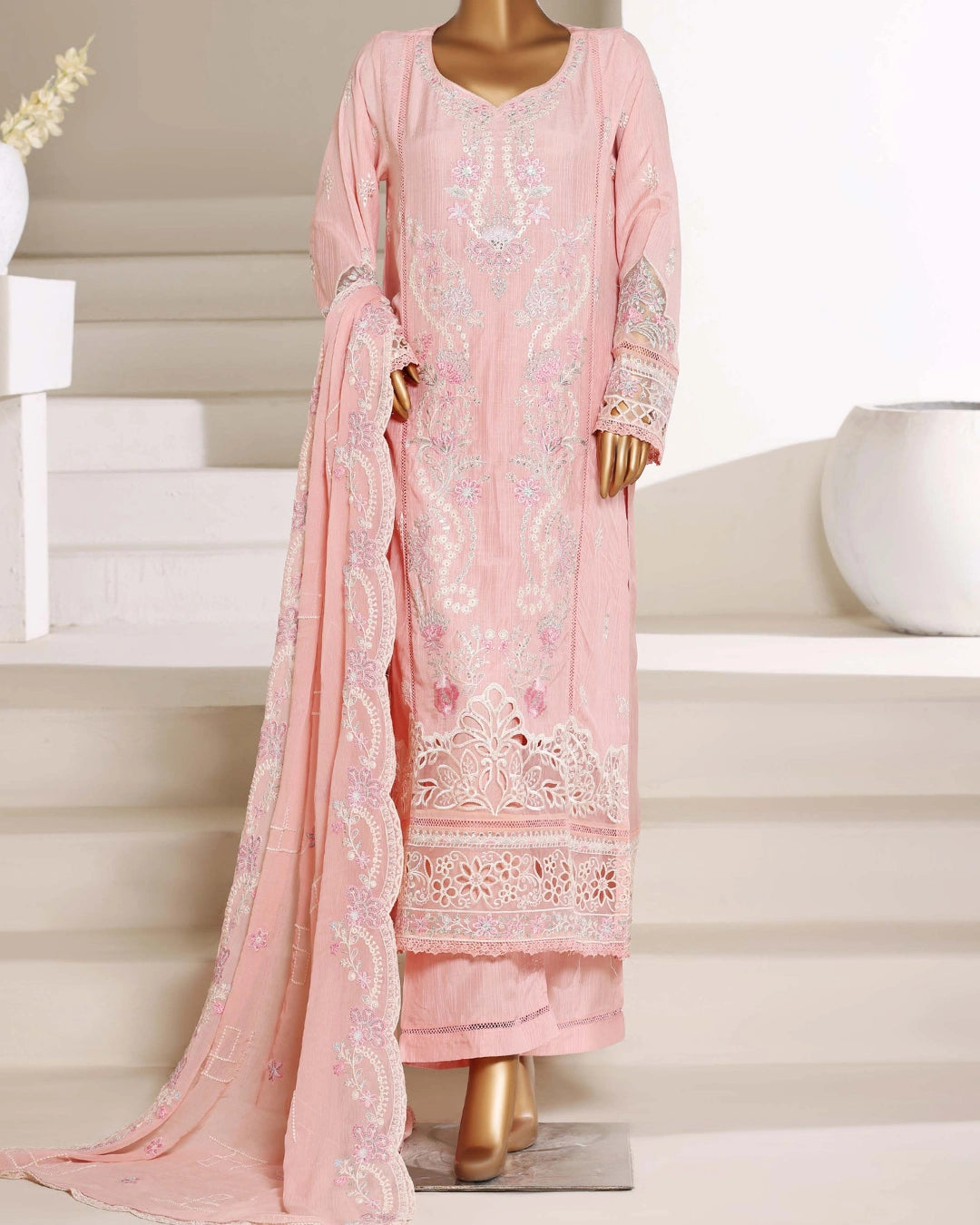 Step into festive elegance with the Sadabahar Luxury Embroidered Lawn Stitched 3-Piece Suit, designed for women who love timeless charm with modern detailing.